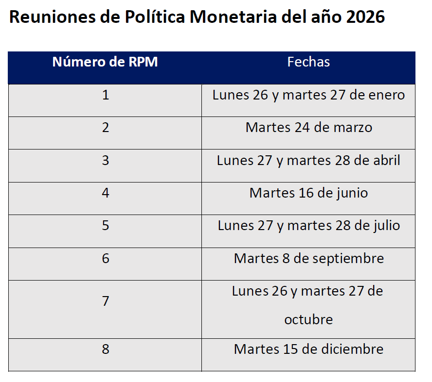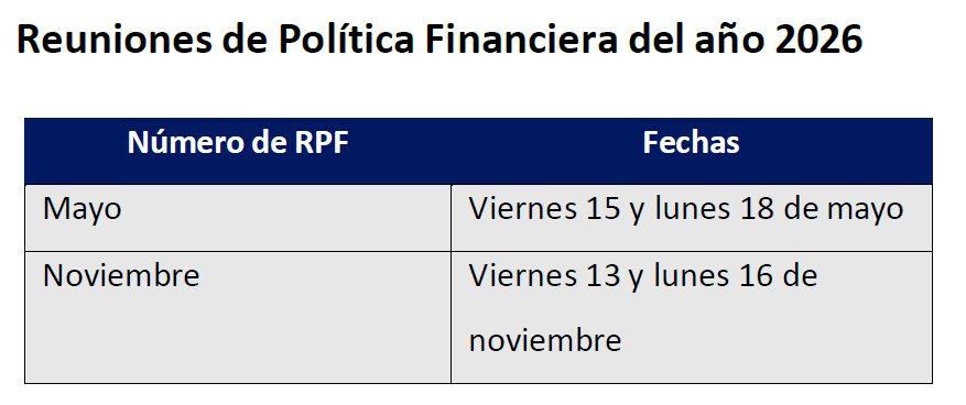 Banco Central publica calendario de Reuniones de Política Monetaria y Financiera, e Informes de Política Monetaria y de Estabilidad Financiera para 2026